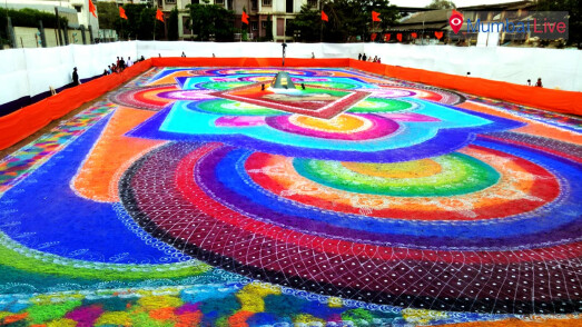 कुर्ला - गुढीपाडवा निमित्त कुर्ल्याच्या न्यू मिल मैदान येथे तब्बल पंधरा हजार चौरस फुटाची भव्य रांगोळी साकारण्यात आली आहे. कुर्ल्यातील हिंदू नव वर्ष स्वागत यात्रा समिती तर्फे गेली 9 वर्ष गुढीपाडवा निमित्त विविध सामाजिक संदेश देणारे उपक्रम येथे आयोजित केले जातात.