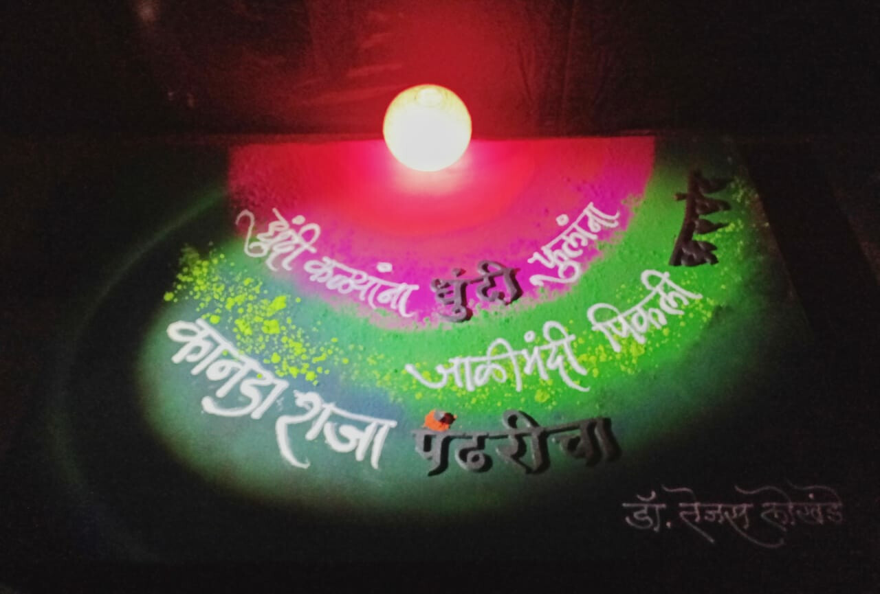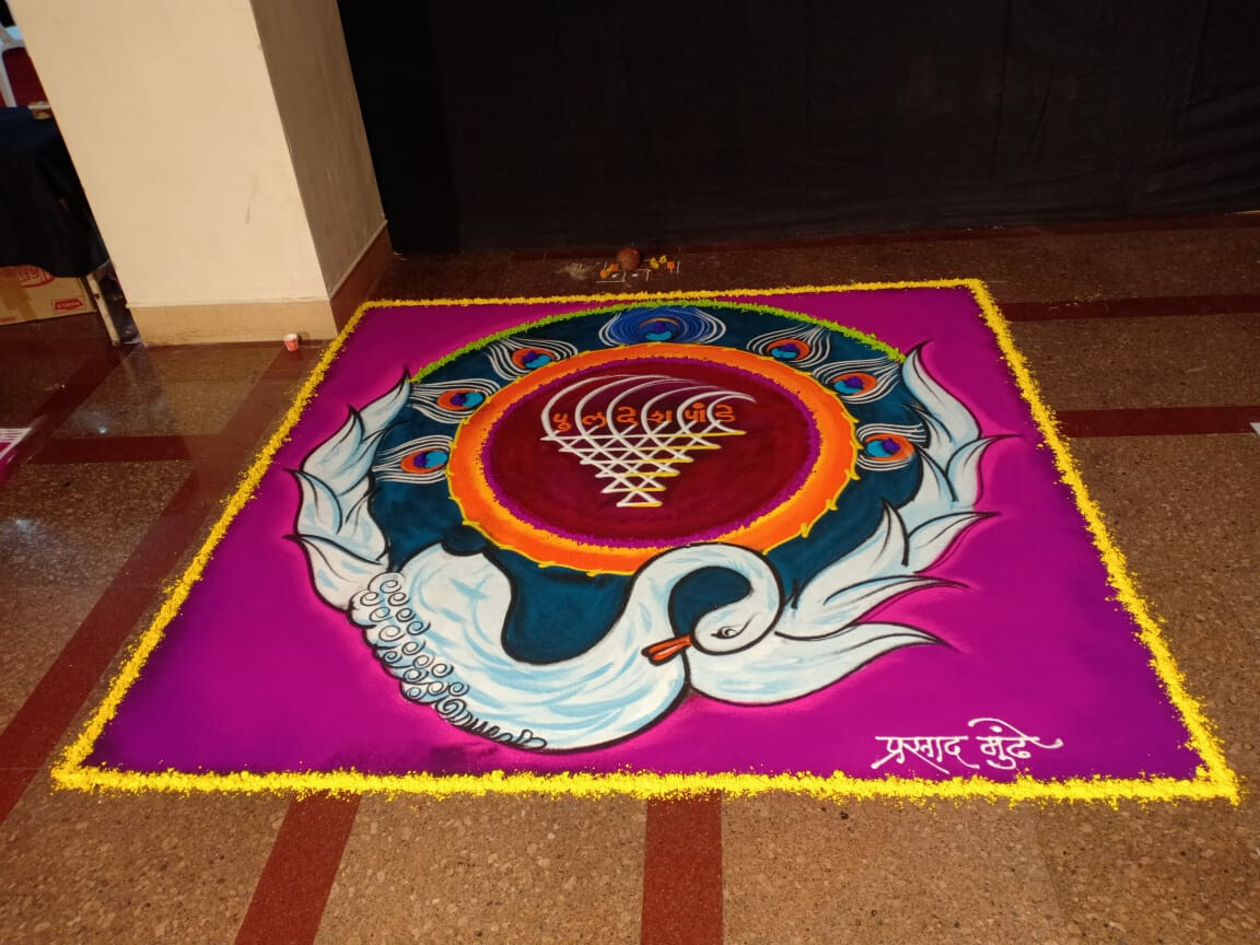 स्वास्थरंग परिवार आणि महाराष्ट्र शासनाच्या पु. ल. देशपांडे कला अकादमी यांच्या संयुक्त विद्यमाने दादर इथल्या पु. ल. देशपांडे सभागृहात रांगोळी प्रदर्शन भरवण्यात आलं आहे. स्वास्थ्यरंग प्रस्तुत या रांगोळी उत्सव २०१८ मध्ये एका नाविन्यपूर्ण रांगोळीचा आविष्कार पाहायला मिळाला.
