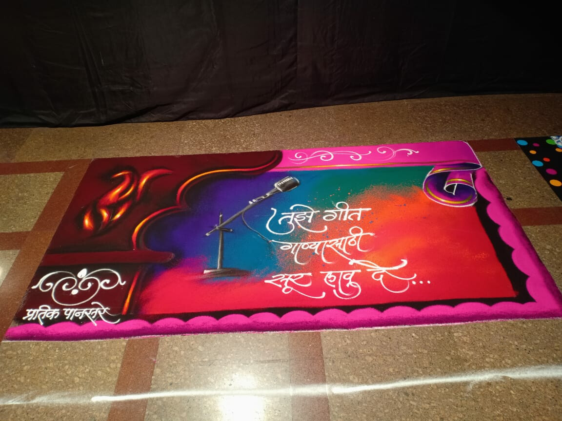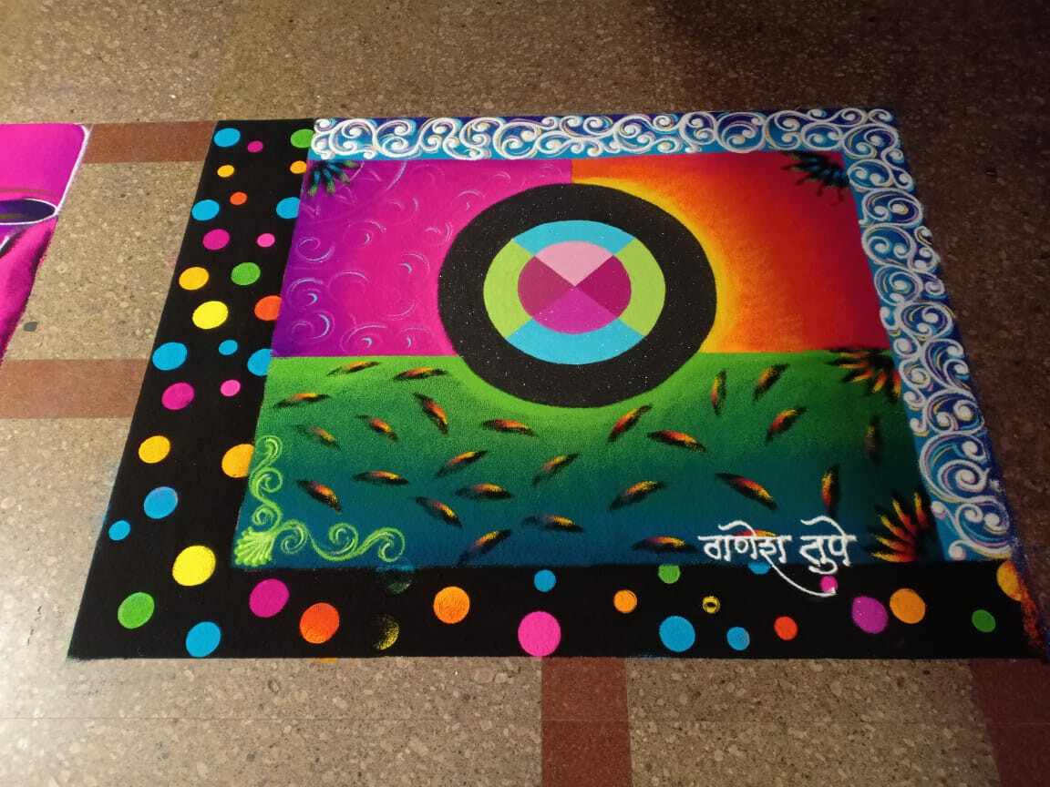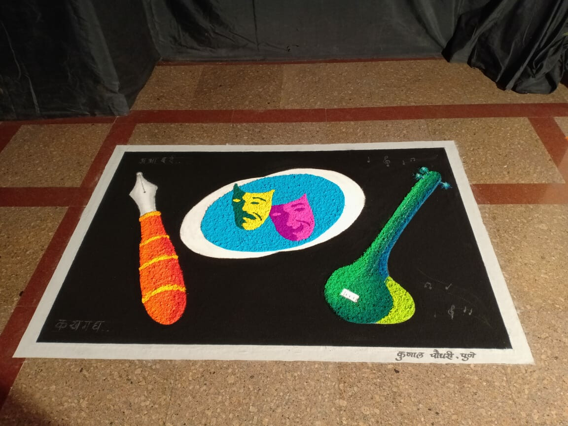 वस्तू मांडणी (Installation) या कला प्रकारातून रांगोळीचे सादरीकरण करण्यात आलं. स्वास्थ्यरंग या ग्रुपचे डॉ. तेजस लोखंडे यांच्या संकल्पनेला प्रेक्षकांकडून चांगलीच पसंती मिळाली.