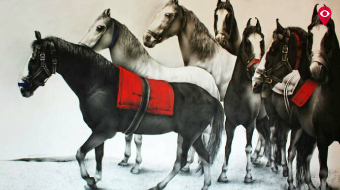हा घोडा मुन्ना महाडिक या राष्ट्रवादीच्या कोल्हापूरच्या आमदारांच्या तबेल्यातील आहे. त्या घोड्याचे हुबेहूब चित्र पाटील यांनी रेखाटले आहे.