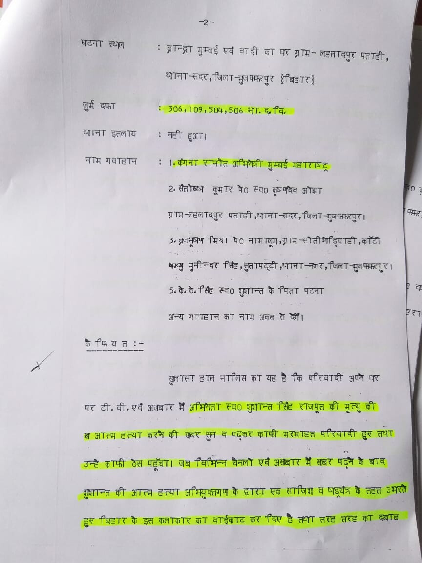 या तक्रारीमध्ये सुशांत सिंह राजपूतला सात चित्रपटातून काढण्यात आले आणि काही चित्रपट प्रदर्शित झाले नाहीत. या ओढावलेल्या परिस्थितीमुळे त्याला इतके टोकाचे पाऊल उचलायला भाग पाडले, असा आरोप सुधीर ओझा यांनी केला आहे. सुधीर यांनी आठ कलाकारांविरोधात तक्रार दिली आहे.