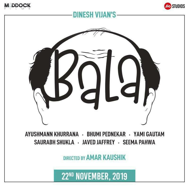 या स्केचमध्ये दोन कान. कानांच्या वरच्या बाजूला डोक्यावर थोडे केस. बाकी सर्व भाग टक्कल. कपाळावर आठ्या आणि त्या खाली 'बाला' असं इंग्रजी अक्षरांमध्ये चित्रपटाचं शीर्षक लिहिलेलं पहायला मिळतं. दिनेश विजान यांच्या मॅडहॅाक फिल्म्स आणि जिओ स्टुडिओजची निर्मिती असलेल्या या चित्रपटाचं दिग्दर्शन अमर कौशिक यांनी केलं आहे. या चित्रपटाच्या निमित्तानं आयुष्मान खुराना आणि भूमी पेडणेकर ही जोडी पुन्हा एकदा एकत्र आली आहे. भूमीनं आयुष्मानसोबत 'दम लगा के हैशा' या चित्रपटाद्वारे आपली अभिनय कारकिर्द सुरू केली आहे. त्यानंतर 'शुभ मंगल सावधान' या चित्रपटातही ही जोडी एकत्र आली आहे.
