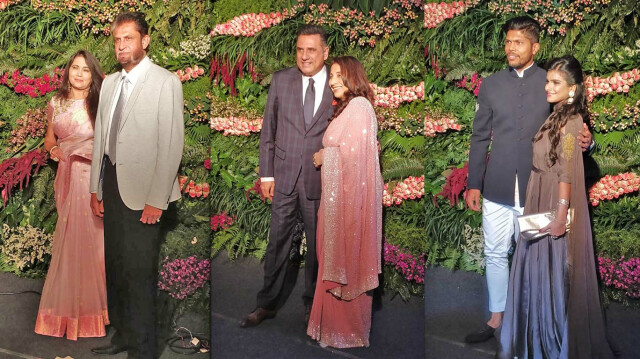 क्रिकेट विश्वातून देखील अनेक दिग्गजांनी रिसेप्शनला हजेरी लावली आहे. संदीप पाटील, रविंद्र जडेजा, सायना नेहवाल यांच्यासह अनेक दिग्गज या कार्यक्रमाला उपस्थित आहेत. याशिवाय रिलायन्सचे मुकेश अंबानी आणि नीता अंबानी यांच्यासह अनेक बिझनेस टायकून्स रिसेप्शनमध्ये सहभागी आहेत.