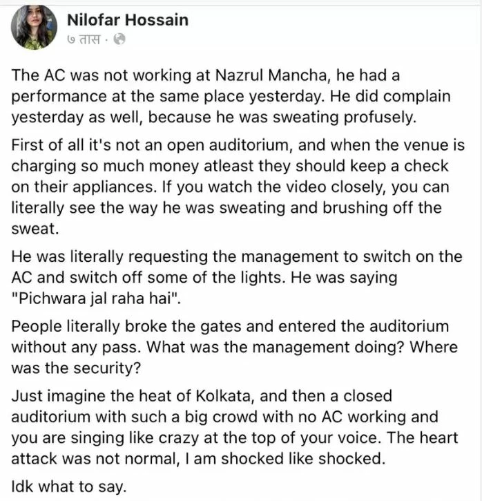 सोशल मीडियावर अनेकांनी दावा केला आहे की, कोलकाता येथील नजरुल मंच सभागृह गर्दीने फुलले होते. नजरल मंचाची क्षमता सुमारे 2,400 असताना, सोशल मीडिया पोस्ट्समध्ये असा दावा करण्यात आला आहे की केके कॉलेज फेस्टसाठी परफॉर्म करत असलेल्या ठिकाणी आणखी बरेच लोक दाखल झाले होते.