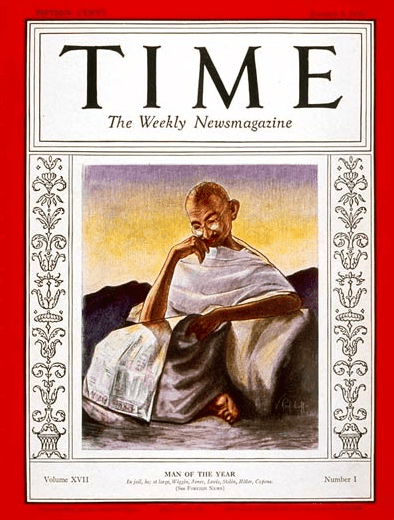 ५) गांधीजी १९३० मध्ये प्रसिष्ठित टाईम मॅगझीनच्या मुखपृष्ठावर 'टाईम पर्सन ऑफ द ईयर' म्हणून झळकले होते. त्यावेळी इतर कुठलाही भारतीय टाईम पर्सन ऑफ द ईयर या मानानं सन्मानित झाला नव्हता.