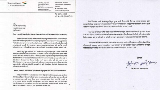 माहिती अधिकार कार्यकर्ते अनिल गलगली यांनी माहिती अधिकाराद्वारे अंबानींच्या रिलायन्स वीज कंपनीने राज्य सरकारला कर भरला नसल्याची माहिती उघडकीस अाणली होती. त्यातच रिलायन्स वीज कंपनीची विक्री करण्यात येणार असल्याचे उघडकीस अाणल्यानंतरही राज्य सरकारनं कोणतीच कारवाई केली नव्हती. त्यामुळे गलगली यांच्या माहितीच्या अाधारे ज्येष्ठ समाजसेवक अण्णा हजारे यांनी राज्य सरकारलाच जाब विचारला अाहे.