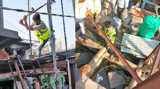 धोबीघाट परिसरातील अंतर्गत पायवाटा चिंचोळ्या असल्याने तिथं जेसीबी, पोकलेन यासारखी यंत्रसामुग्री नेणं शक्य नव्हतं. त्यामुळे या परिसरात अतिक्रमण निर्मूलनाची कारवाई करताना हॅण्ड कटर, कुदळ, फावडे, हातोडा अशी पांरपारिक साधने वापरण्यात आली. या कारवाईसाठी मुंबई महापालिकेचे ४६ कामगार-कर्मचारी-अधिकारी घटनास्थळी कार्यरत होते.