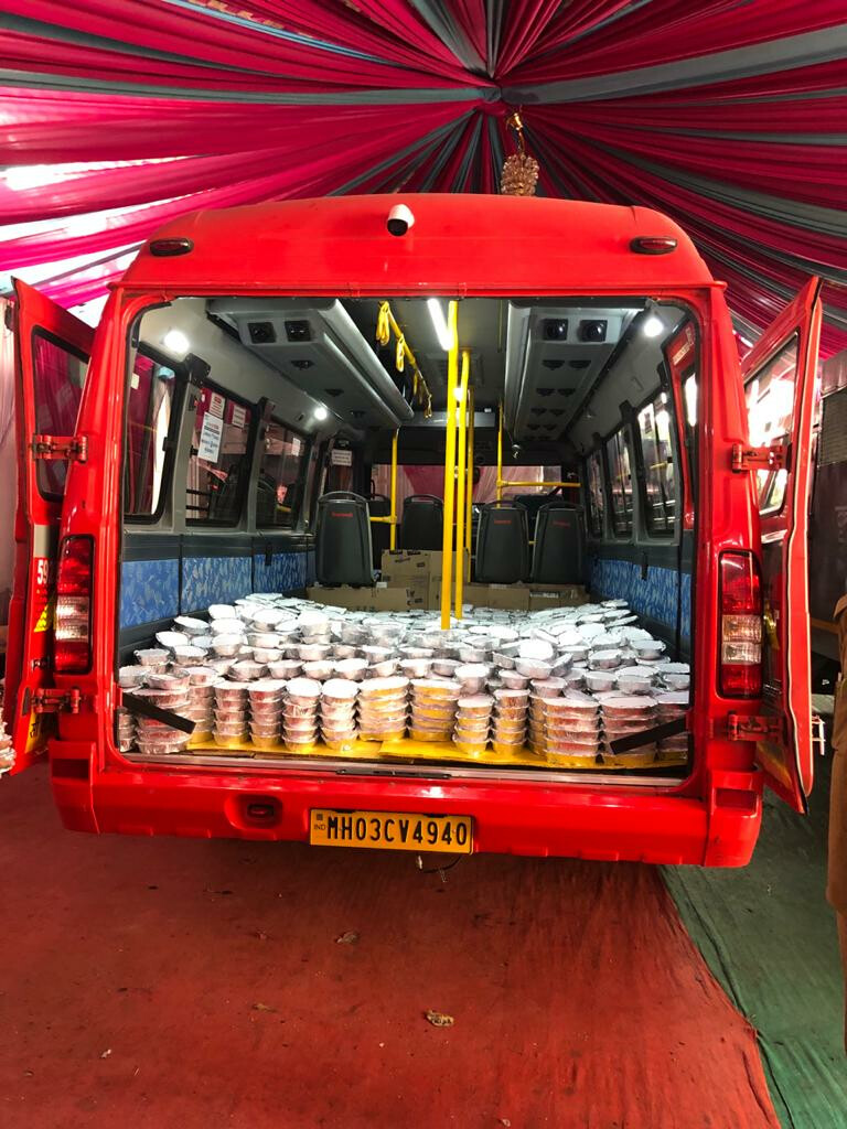 अन्नाच्या वितरणासाठी 'बेस्ट'च्या बस गाड्या वापरण्यात येत असून एकूण ३४ बसगाड्यांमधून हे अन्नदान करण्यात येणार आहे. स्थानिक स्तरावर प्रत्यक्ष वितरण करताना नगरसेवकांचं सहकार्य घेतलं जात आहे. सुमारे ४०० पेक्षा अधिक ठिकाणी हे वितरण होत आहे. प्रत्येक अन्न पाकिटामध्ये ३ चपात्या, १०० ग्रॅम भाजी देण्यात येते तर कधी या ऐवजी सुमारे ३५० ग्रॅम खिचडी किंवा पुलाव, अथवा राजमा चावल देण्यात येत आहे.