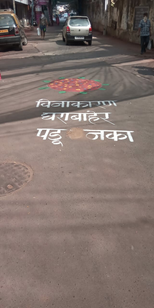 जी/दक्षिण विभागातील जितके कंटेन्मेंट परिसर आहेत, त्या सर्व १८ झोनच्या रस्त्यावर जी/द विभागाच्या कर्मचाऱ्यांच्यामार्फत प्रबोधन पर पेंटिग काढण्यात येत आहे. कोरोनाचा विषाणू दर्शवणारे अनेक चित्र काढण्यात आले असून, त्या चित्राला संबोधून विचारही लिहिले आहेत. चला तर पाहूयात...