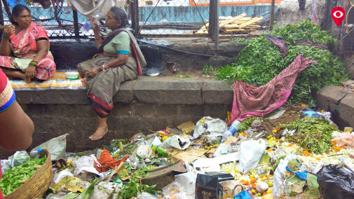 दादर रेल्वे स्थानकाकडील फुलमार्केटमधून जात असताना पब्लिक ब्रिजच्या कोपऱ्यात अनेक दिवसांपासून कचरा तसाच पडून आहे. गेल्या 2-3 महिन्यांपासून या ठिकाणचा कचरा उचललाच न गेल्यामुळे या कचऱ्यात किडे झाल्याचे पहायला मिळत आहे. दोन दिवसांपूर्वी मुंबईत झालेल्या पावसामुळे हा कचरा भिजला असून, यातून आता दुर्गंधी देखील येत आहे. त्यामुळे या दुर्गंधीचा त्रास प्रवाशांसह इथे बसणाऱ्या विक्रेत्यांना देखील होत आहे. त्यातच या ठिकाणचा नवीन पादचारी पूल दुरुस्तीसाठी बंद केल्यामुळे पावसाळ्यात प्रवाशांना गर्दीसोबतच दुर्गंधीचा त्रास सहन करावा लागत आहे. 'पावसाच्या पाण्यामुळे भिजलेला हा कचरा महापालिकेने उचलावा,' अशी मागणी प्रवासी करत आहेत.