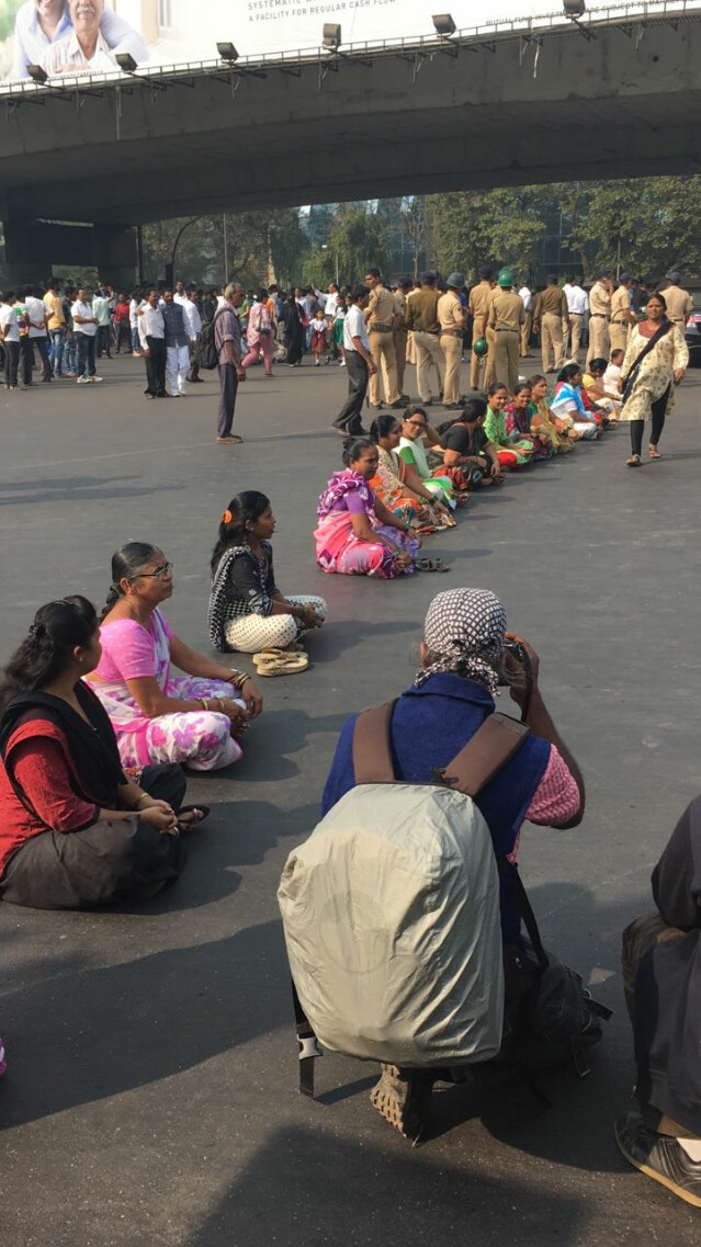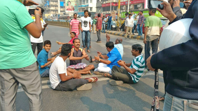 ११.१३ - वांद्र्यातील कलानगर जंक्शन येथे आंदोलनकर्त्यांनी रस्त्यावर बसून केला विरोध