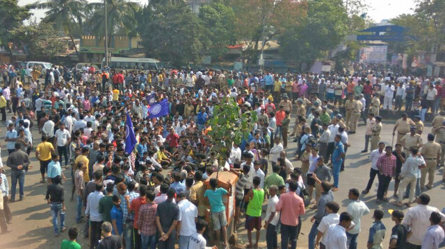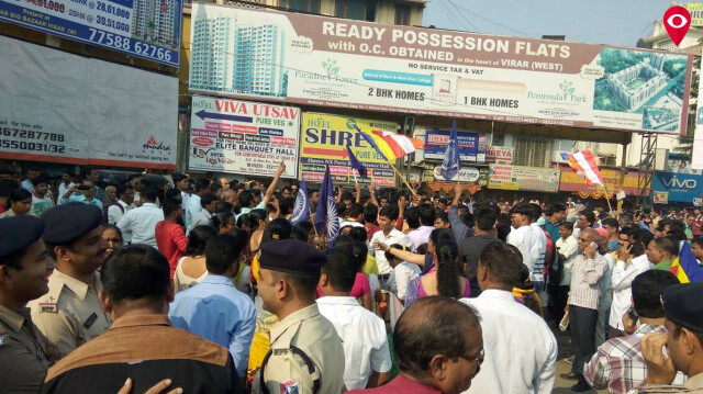 Update - Large number of protestors have occupied the railway tracks at Nallasopara Station from about 9.55 hrs, disrupting rail traffic. Administration & Security Forces are making all efforts to normalise the train operations @drmbct @rpfwrbct pic.twitter.com/KTPgmenWvF