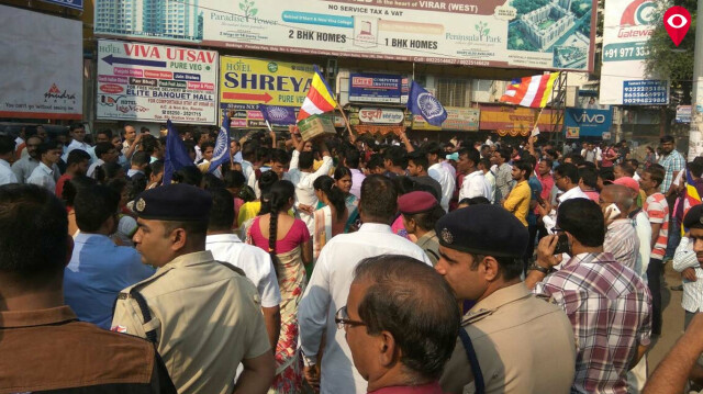 या घटनेचा आंबेडकरी अनुयायी, संघटना आणि विविध राजकीय पक्षांकडून निषेध व्यक्त करण्यात येत आहे. त्याचाच भाग म्हणून घाटकोपर, कुर्ला, मानखुर्द, चेंबूर अशा ठिकाणी आंबेडकरी अनुयायी रस्त्यावर उतरत ठिकठिकाणची दुकाने बंद करत आहेत. चेंबूरच्या अमर महल येथे रास्ता रोको करण्यात आला असून काही ठिकाणी दगडफेकीचे प्रकारही घडल्याचं समजत आहे. ठिकठिकाणी होणाऱ्या या आंदोलनामुळे इस्टर्न एक्स्प्रेस वेवर प्रचंड वाहतूककोंडी निर्माण झाली.