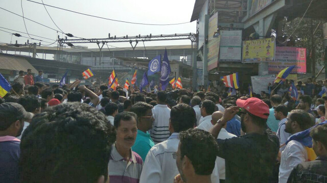 ३.१६ - सर्व कार्यकर्त्यांना शांतता राखण्याचं आवाहन करण्यात येत आहे. मुंबईकरांशी सहकार्य करा, आंदोलन सायंकाळी ५ वाजेपर्यंत मागे घेण्यात येईल - आनंदराज आंबेडकर