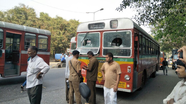 २.२८ - दुपारी १ वाजेपर्यंत ४८ बसेसची तोडफोड, चार वाहनचालक काचा लागून जखमी