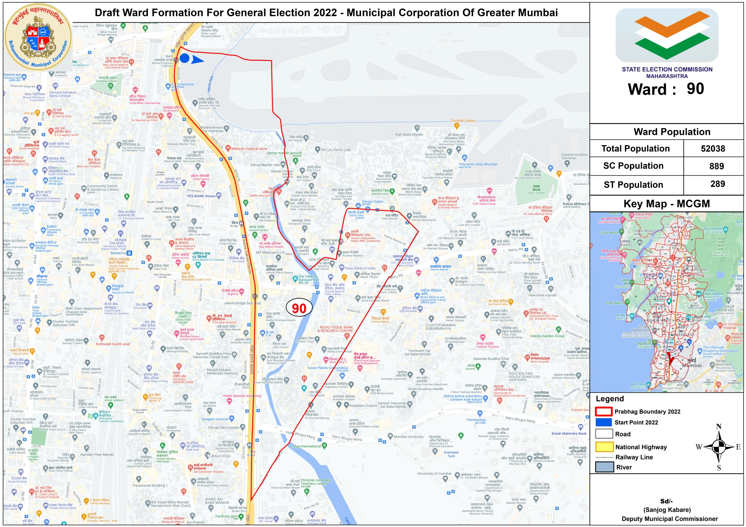 वॉर्ड क्रमांक ९० - वाकोला नाला, सिद्धी नर्सिंग होम, वाकोला पोलीस स्टेशन, बीएमसी दवाखाना आणि आजूबाजूचा परिसर