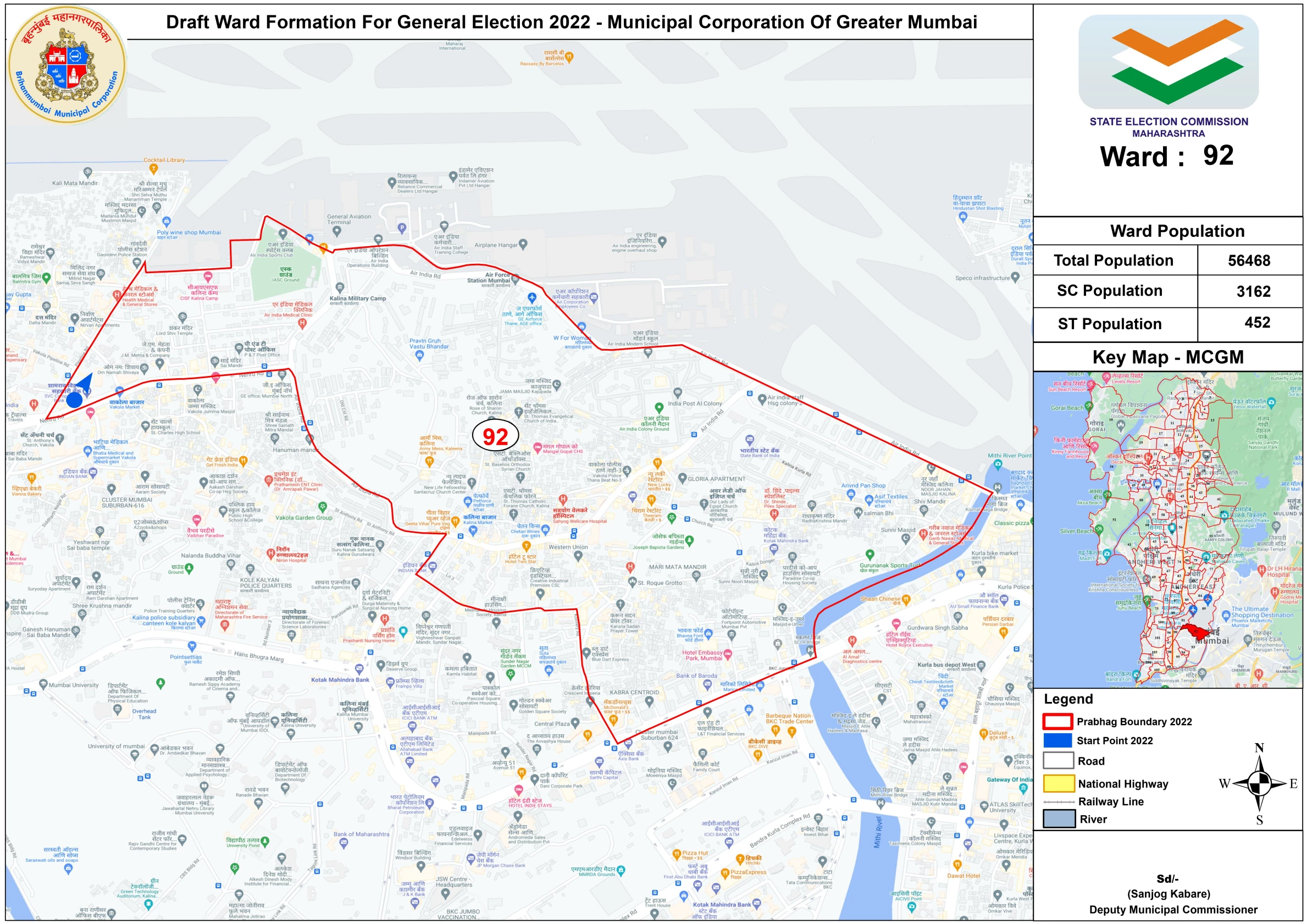 वॉर्ड क्रमांक ९२ - CISF कलिना कॅम्प, कलिना बाजार, जामा मशीद, सहयोग हॉस्पिटल, एअर इंडिया कॉलनी ग्राउंड आणि आसपासचा परिसर