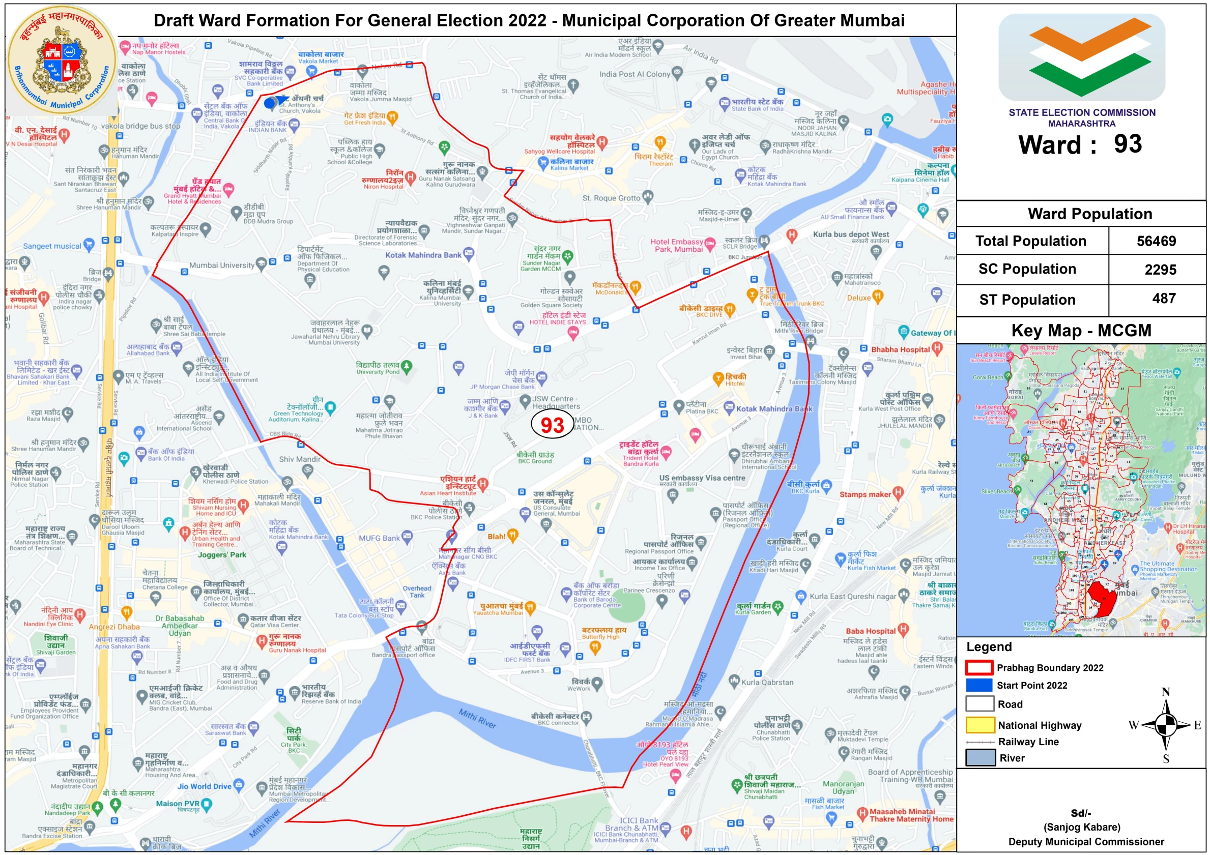 वॉर्ड क्रमांक ९३ - सेंट अँथनी चर्च, निरॉन हॉस्पिटल, मुंबई विद्यापीठ, वांद्रे पोस्ट ऑफिस, सुंदर नगर गार्डन आणि आसपासचा परिसर