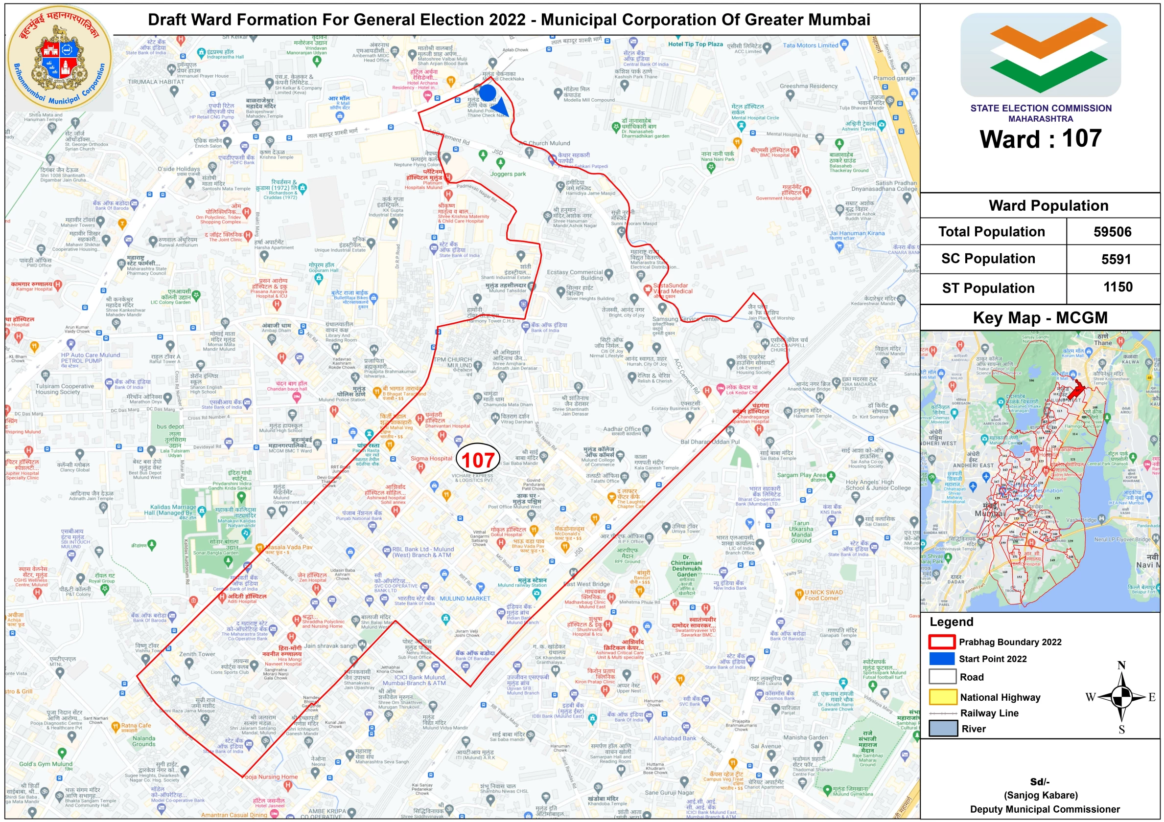वॉर्ड नंबर १०७ - जॉगर्स पार्क, हनुमान मंदिर, धन्वंतरी हॉस्पिटल, झेन हॉस्पिटल, आशीर्वाद हॉस्पिटल, मुलुंड मार्केट, मुलुंड स्टेशन आणि जवळपासचा परिसर.