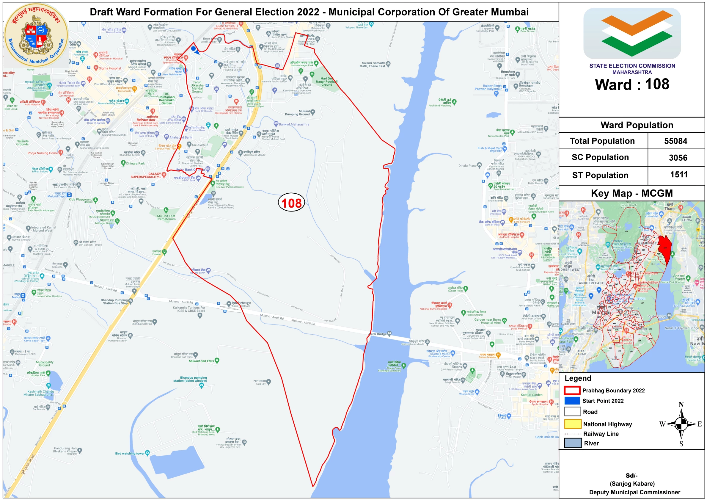 वॉर्ड नंबर १०८ - जैन मंदिर, गव्हाणपाडा अग्निशमन दल, ठाणे मुलुंड चेकनॅक, मुलुंड डम्पिंग ग्राउंड आणि आसपासचा परिसर.