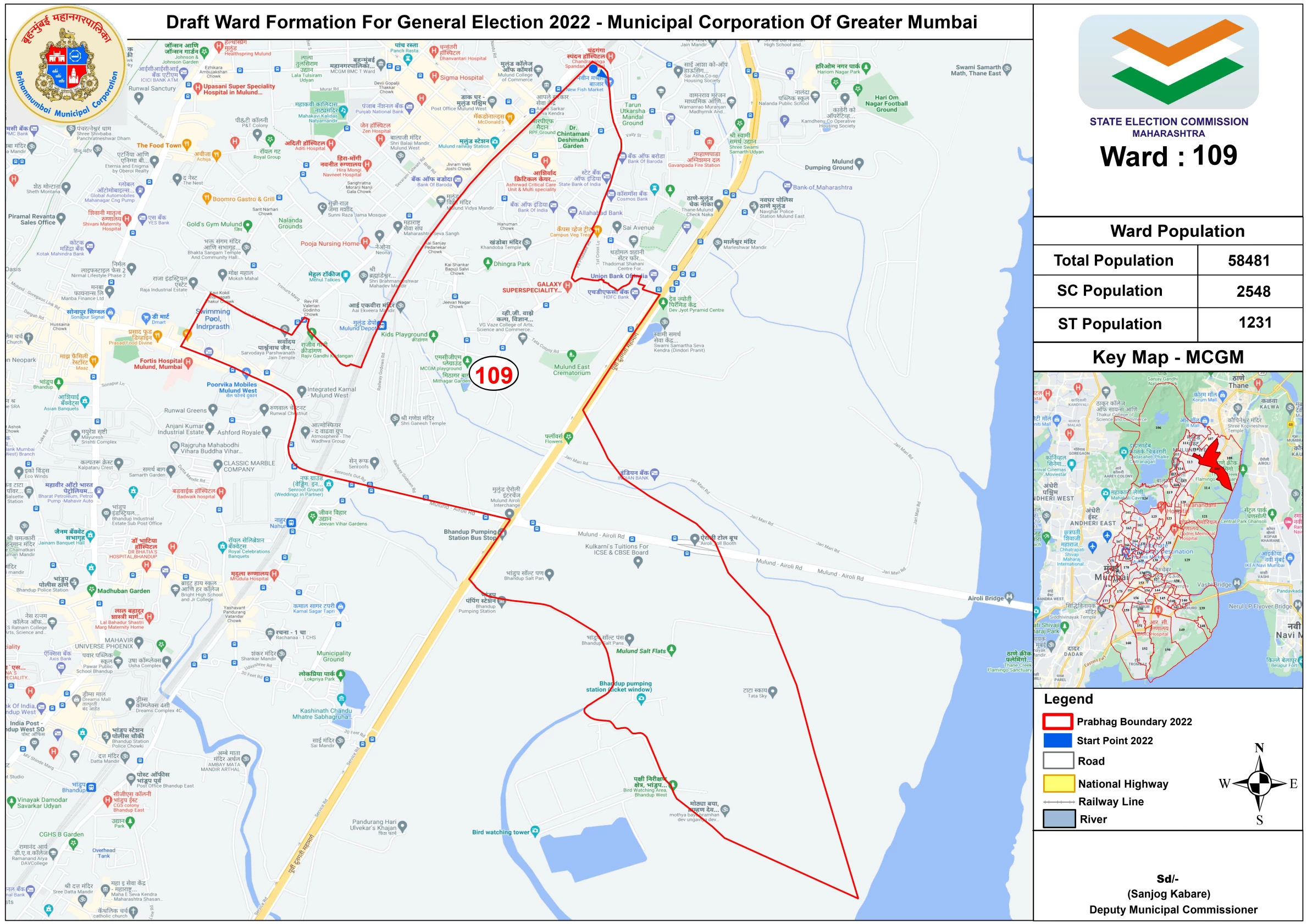 वॉर्ड नंबर १०९ - चिंतामणी देशमुख गार्डन, खंडोबा मंदिर, मिठानगर गार्डन, ऐरोली टूल बूथ आणि जवळपासचा परिसर.