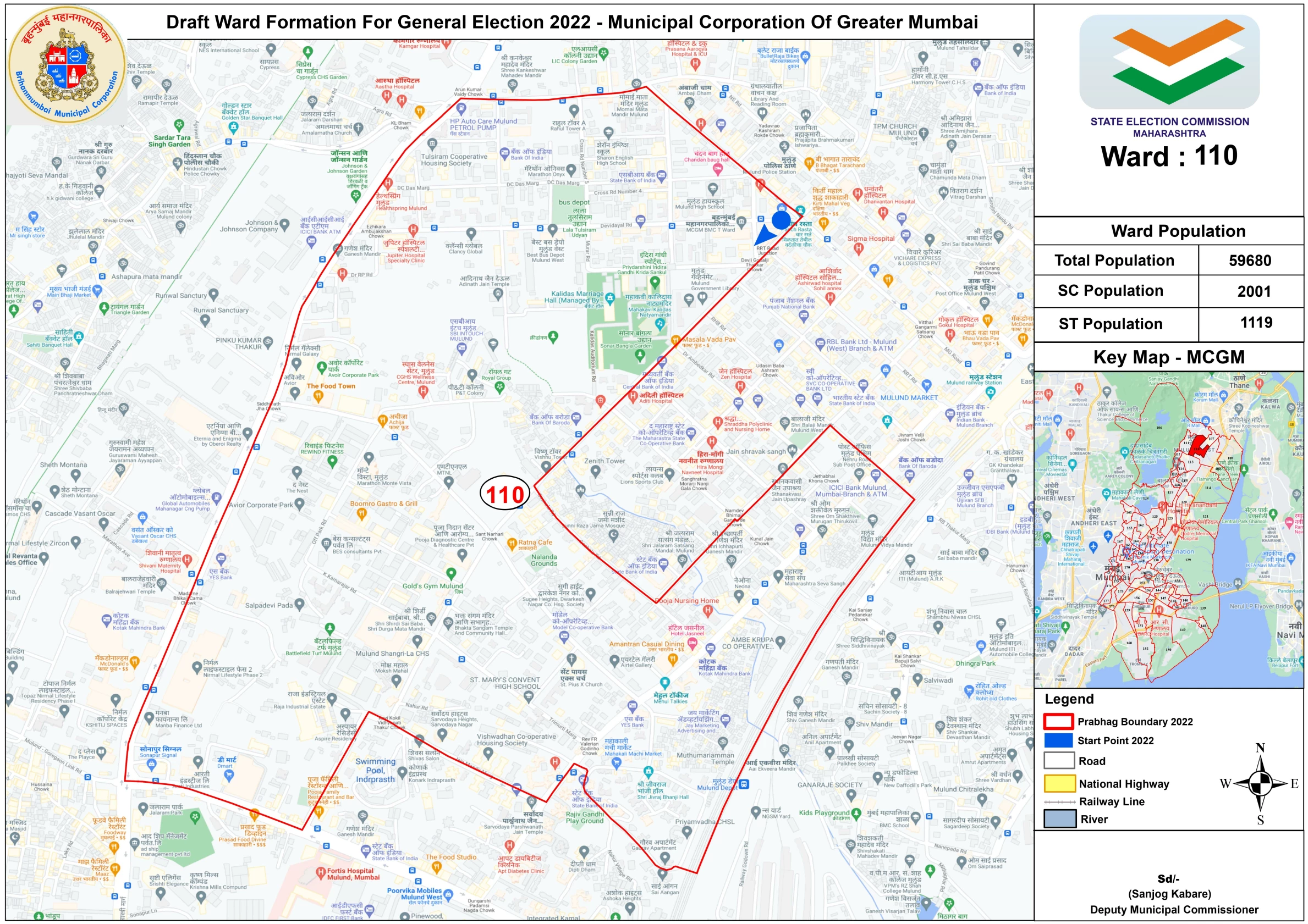 वॉर्ड नंबर ११० - बीएमसी टी वॉर्ड ऑफिस, शेरॉन इंग्लिश स्कूल, ज्युपिटर हॉस्पिटल, सोनापूर सिग्नल, जीवराज भाजी हॉल आणि जवळपासचा परिसर.