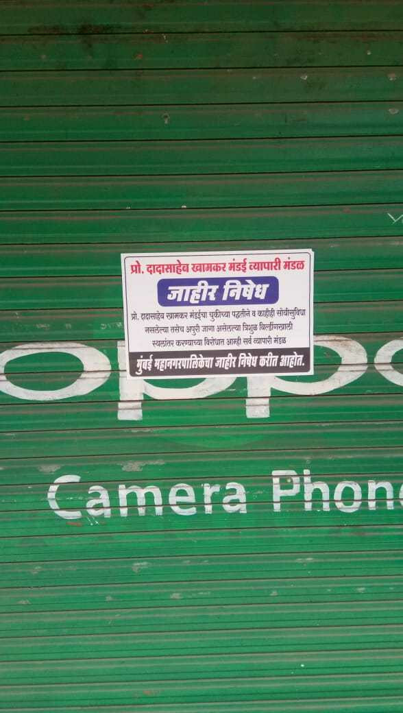 लोअर परळ स्थानकाच्या पश्चिमेकडील गणतपराव कदम मार्गावरील प्रो. दादासाहेब खामकर भाजी मंडई महापालिकेकडून स्थलांतर करण्यात येणार आहे. मात्र, या मंडईचं स्थलांतर होऊ नये यासाठी, तसंच पालिकेचा निषेध करण्यासाठी बुधवारी मंडईतील सर्व व्यवहार बंद ठेवण्याचा निर्णय स्थानिक व्यापाऱ्यांनी घेतला आहे.