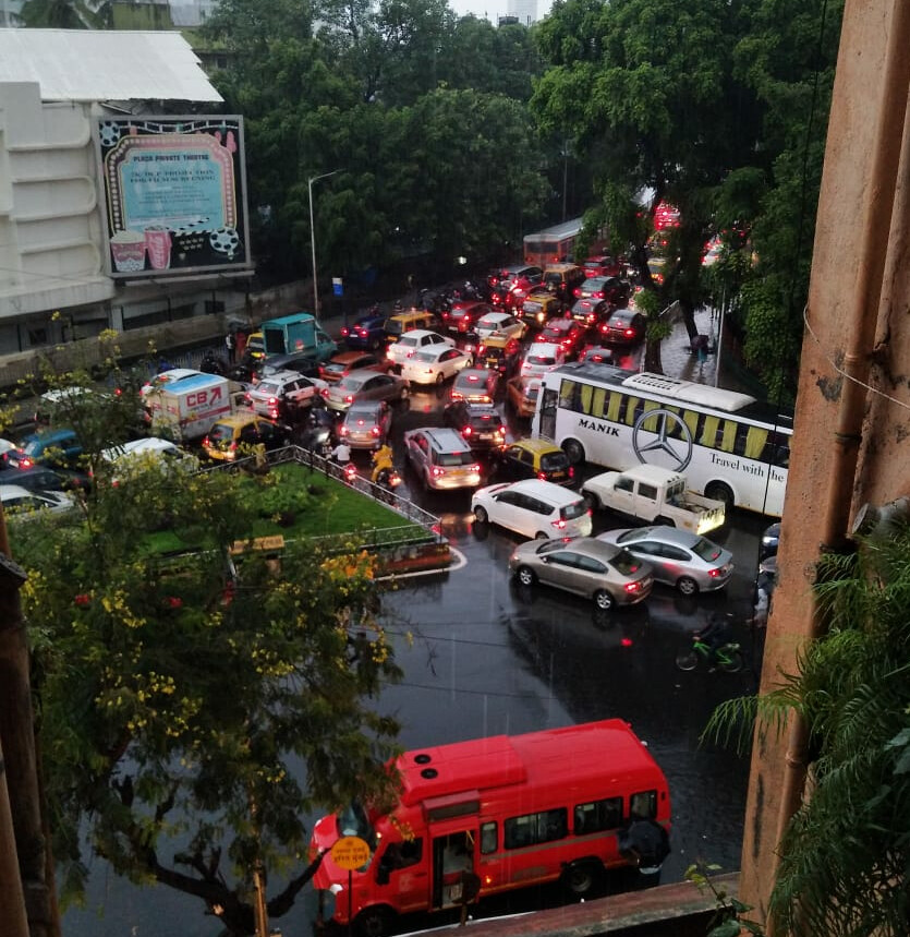 मुसळधार पाऊस झाला की मुंबईची तुंबई होते, त्याचं चित्र आता पाहायला मिळत आहे. मुंबईच्या दादर, परळ, लालबाग, कुर्ला, सायन, माटुंगा, अंधेरी, मालाड, परिसरात पावसानं जोरदार हजेरी लावली आहे. त्यामुळं येथील सखल भागांत पाणी साचलं आहे. गुडघाभर पाणी साचल्यानं दादर येथील प्लाझा ते दादर टी.टी. परिसरात प्रचंड वाहतूक कोंडी झाली आहे.
