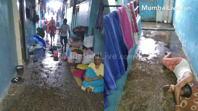 पण, ३८, ३९ आणि ४० क्रमांकाच्या इमारतीची पावसाळ्यापूर्वी दूरूस्ती झाली नव्हती. त्यामुळं शनिवारी जोरदार पाऊस सुरू झाला आणि या तिन्ही इमारतीतील रहिवाशांच्या घरादारात पाणी शिरू लागलं. महत्त्वाचं म्हणजे इतर इमारतींचीही थोडीफार अवस्था अशीच आहे. घरा-घरात बादल्या, भांडी ठेवण्यात आल्याचं चित्र पाहायला मिळत आहे.