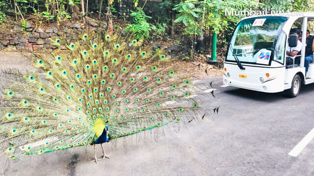 पावसाळी ढग दिसू लागले की, मोर पिसरा फुलवून थुई थुई नाचू लागतो. अशा नाचणाऱ्या मोराचं दर्शन मुंबईकरांना घडणं तसं दुर्मिळच...पण बुधवारी १३ जूनला हा योग जुळून आला. मलबार हिल येथील राजभवन परिसराला भेट देण्यासाठी गेलेल्या पर्यटकांचं स्वागत मोराने चक्क पिसारा फुलवून केलं अन् घामाने निथळलेल्या अवस्थेतही पर्यटकांच्या मनात पाऊसधारा बरसायला लागल्या.