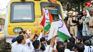 रेल्वे प्रशासनाचा निषेध आणि बुलेट ट्रेनला विरोध करण्यासाठी कळवा रेल्वे स्टेशनवर राष्ट्रवादी काँग्रेसच्या ठाणे शाखेच्या कार्यकर्त्यांनी आमदार जितेंद्र आव्हाड यांच्या नेतृत्वाखाली मंगळवारी रेल रोको आंदोलन केले. यावेळी आंदोलनकर्त्यांनी 2 मिनिटापर्यंत रेल्वेलाईन अडवून ठेवली होती.