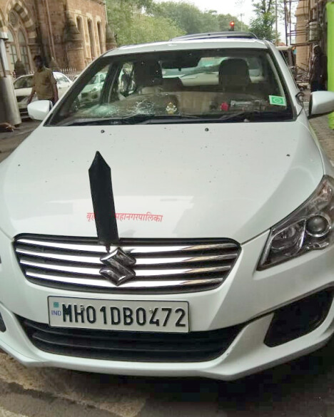 मुंबई महापालिका मुख्यालय इमारतीच्या दुसऱ्या मजल्यावरील छज्जाचा भाग बुधवारी संध्याकाळी महापालिका अधिकाऱ्याचा गाडीवर कोसळला. सुदैवाने यात कुणीही जखमी झालं नाही. मात्र, या दुर्घटनेत उपायुक्त डॉ. किशोर क्षीरसागर यांच्या गाडीची काच फुटून नुकसान झालं.
