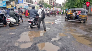पाऊस आणि रस्त्यांवरील खड्डे हे समीकरण मुंबईकरांसाठी काही नवीन नाही. पावसाच्या आगमनानंतर दरवर्षीप्रमाणे यंदाही मुंबईत खड्डे दर्शनाला सुरुवात झाली आहे. त्याप्रमाणे मालाडच्या एस. व्ही. रोडवर देखील मोठया प्रमाणात खड्डे पडले आहेत.