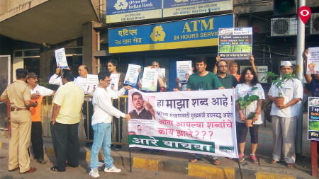 पंतप्रधान आणि मुख्यमंत्र्यांनी या अगोदर विविध कार्यक्रमांतून दिलेल्या आश्वासनांची आठवण करून देणारे फलक यावेळी कार्यकर्त्यांकडून झळकविण्यात आले. त्यानंतर ग्रुपच्या सदस्यांनी सिद्धिविनायकाचं दर्शन घेतलं. या दरम्यान मुख्यमंत्री देवेंद्र फडणवीस आणि पंतप्रधान मोदी यांनी आरेतील झाडे वाचवून मेट्रो 3 प्रकल्प साकारावा, असे मत सदस्यांनी व्यक्त केलं.