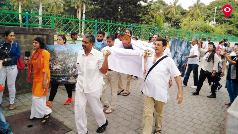 दुपारी साडेचारच्या सुमारास वाय. बी. सेंट्रल येथून ही अंत्ययात्रा निघाली. जे. टाटा रोडवर अंत्ययात्रा पोहोचली, तेव्हा तेथे कंत्राटदाराकडून झाडाची कत्तल सुरू होती. ही कत्तल रोखण्यासाठी हा जमाव आल्याचे वाटल्याने घाबरलेल्या कंत्राटदारांनी पोलिसांना बोलावले आणि मग पोलिसांनी ही अंत्ययात्रा रोखत झोरू बाथेनासह अन्य सदस्यांना ताब्यात घेतल्याची माहिती 'सेव्ह ट्री'चे सदस्य अभय बाविशी यांनी दिली. झाडांच्या कत्तलीविरोधात यापुढेही रस्त्यावरील आंदोलन सुरू राहील, असा निर्धारही 'सेव्ह ट्री'ने यावेळी व्यक्त केला.