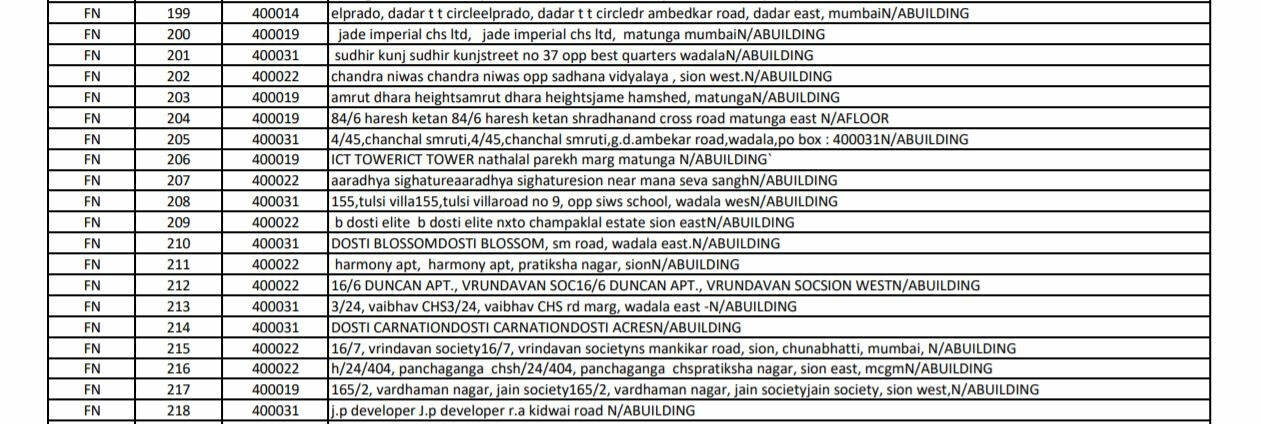 तर, दुसरीकडे महापालिकेने (bmc) मुंबईतील ७०० हून इमारती सील केल्या आहेत. मुंबईतील एफ नाॅर्थ (F North) वाॅर्डातल्या माटुंगा, वडाळा परिसरातील पूर्ण/ आंशिक सील इमारतींची यादी पुढीलप्रमाणे: ही यादी ५ एप्रिल २०२१ रोजी प्रसिद्ध करण्यात आली असून कोरोनाबाधितांच्या संख्येनुसार काही इमारतींची नावं वगळण्यात आलेली असू शकतात किंवा नवीन नावांचा समावेशही झालेला असू शकतो. अद्ययावत माहितीसाठी मुंबई महापालिकेच्या https://stopcoronavirus.mcgm.gov.in/ संकेतस्थळाला भेट द्यावी.