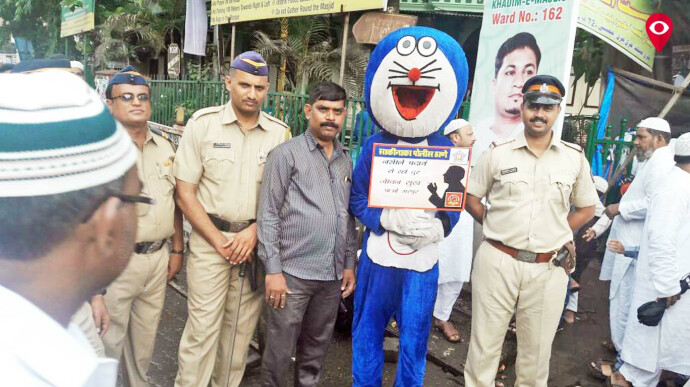 मुलांना आकर्षित करणारे पपेट घेऊन पोलिसांनी यावेळी जनजागृती केली. मुस्लिम बांधव देखील यावेळी पोलिसांना ईदच्या शुभेच्छा देत अंमली पदार्थ विरोधी मोहिमेत सहभागी झाले होते.