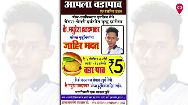 ही गरज ओळखून परळ एसटी डेपो इथं 'आपला वडापाव' नावानं ५ रुपयांना वडापावची विक्री करणाऱ्या मंगेश अहिवळे यांनी १४ आॅक्टोबर रोजी वडापाव विक्रीतून जमा होणारी रक्कम मयुरेशच्या कुटुंबाला देण्याचं ठरवलं. त्यासाठी मुंबईकरांना आवाहनही केलं.
