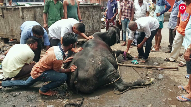 राजीव गांधी नगरातील गटारात पडून गाय जखमी झाल्याची घटना समजल्यानंतर स्थानिकांनी अग्निशमन दलाला बोलावले. अग्निशमन दलाच्या जवानांनी अथक प्रयत्नांनी या गरोदर गायीला गटारातून बाहेर काढले. पण या गायीला रुग्णालयात दाखल करण्याचे काम आपले नसून प्राणी रुग्णालयातील अधिकाऱ्यांना कळवा, असे सांगून ते निघून गेले. त्यानुसार परळच्या प्राणी रुग्णालयाला याबाबत माहिती देण्यात आली. प्राणी रुग्णालयातील वैद्यकीय अधिकाऱ्यांनी केवळ या गायीची पाहणी करून आपल्याकडे गाय उचलण्यास सक्षम यंत्रणा नसल्याचे सांगत काढता पाय घेतला. त्यानंतर स्थानिकांनी अनेक प्राणीमित्र संघटनांकडे गायीच्या मदतीसाठी संपर्क साधला. परंतु आश्वासनापलिकडे स्थानिकांच्या हाती काहीच लागले नाही.