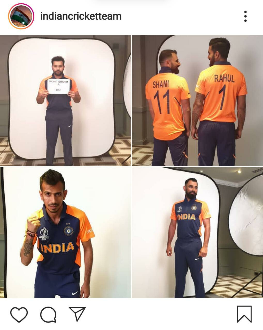 भारतीय संघाच्या नव्या भगव्या जर्सीचं अधिकृत अनावरण करण्यात आले. नव्या जर्सीमध्ये समोरचा भाग हा निळ्या रंगाचा असून दोन्ही हात आणि पाठीमागचा संपूर्ण भाग भगव्या रंगात आहे.