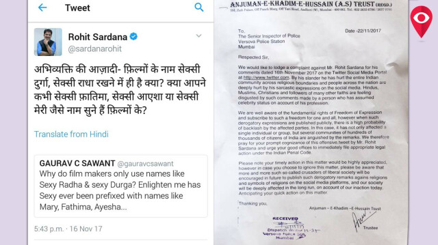 16 नव्हेंबरला रोहित सरदाना यांनी एक ट्विट केलं होतं. या ट्विटमुळे मुस्लिम समाजासह हिंदू आणि ख्रिश्चन बांधवांच्या भावना दुखावल्या गेल्याचा दावा अंजुमन-ए-खादिम-ए-हुसैन ट्रस्टनं केला आहे. या ट्रस्टने मुंबईच्या वर्सोवा पोलीस ठाण्यात रोहीत सरदाना विरोधात लेखी तक्रार करत कारवाईची मागणी केली आहे.