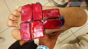 मुंबई - मुंबई आंतरराष्ट्रीय विमानतळावर एका प्रवाशाने आपल्या पायाला चिकटवून सोन्याची तस्करी केल्याने खळबळ उडाली. सोमवारी रात्री ही घटना घडली. थिरुपथी पलनियंडी असं या प्रवाशाचं नाव असून सिंगापूरहून मुंबईला येत होता. ही गोष्ट लक्षात येताच त्याला अटक करण्यात आली. विशेष म्हणजे कस्टमची नजर चुकवण्यासाठी त्याने सोन्याची बारा बिस्किटे स्वतःच्या पायाला चक्क चिकटवली होती.