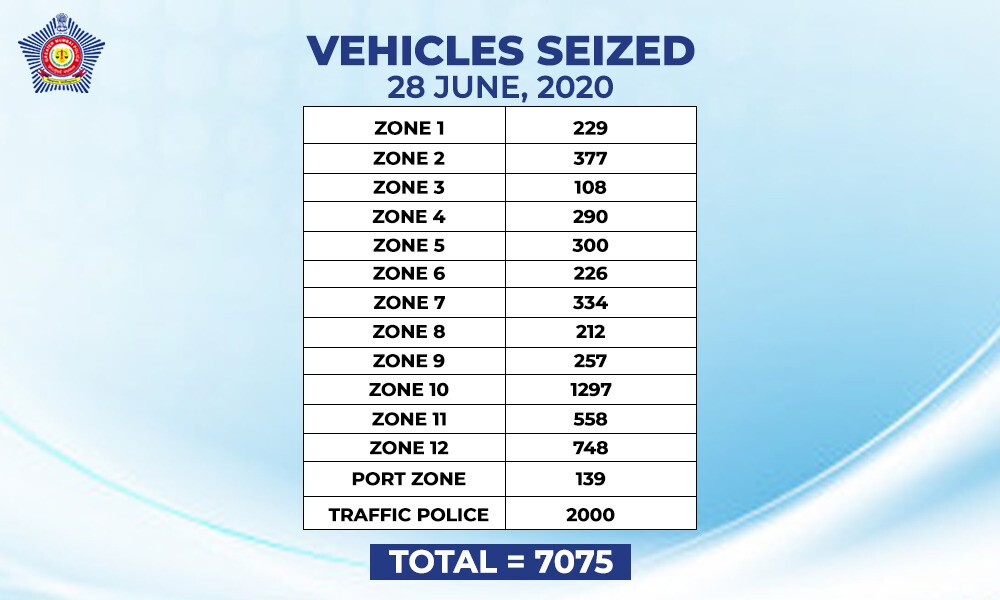 ० झोन 10 म्हणजे साकीनाका, पवई, अंधेरी, जोगेश्वरी, मेघवाडी,एमआयडीसी, परिसरात पोलिसांनी सर्वाधिक म्हणजेच 1297 वाहने जप्त केली.