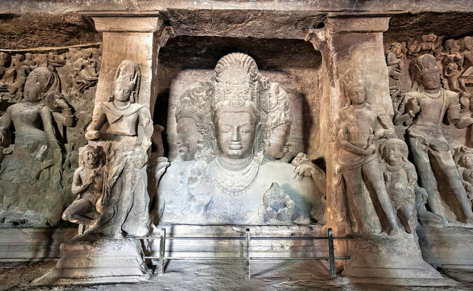 एलिफंटा लेणी मुंबईपासून १६ किलोमीटरच्या अंतरावर असलेल्या घारापुरीच्या बेटावर आहे.