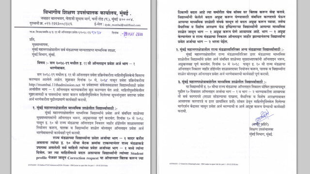 राज्य मंडळाव्यतिरिक्त इतर मंडळांच्या शाळांनीही दहावीचा निकाल जाहीर होईपर्यंत शाळास्तरावर नियोजन करून प्रवेश अर्ज भरून घ्यावेत, असंही या परिपत्रकात नमूद करण्यात आलं आहे. मुंबई महानगर क्षेत्राबाहेरील विद्यार्थ्यांनी निकाल जाहीर झाल्यानंतर पुढील १० दिवसांत ऑनलाइन अर्जाचा भाग-१ आणि भाग-२ भरण्याकरता मार्गदर्शन केंद्रावर जावे, अशा सूचनाही देण्यात आल्या आहेत.