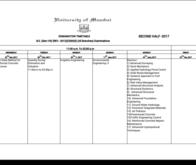 मुंबई विद्यापीठाच्या इंजिनीअरींगच्या सिव्हिल इंजिनीअर, मेकॅनिकल इंजिनीअर, इलेक्ट्रीक इंजिनीअर, काॅम्प्युटर इंजिनीअर अशा सगळ्या शाखांची परीक्षा २२ नोव्हेंबरपासून सुरू होत आहे. या संदर्भातील ६ पेपरचं सविस्तर वेळापत्रक विद्यापीठाने वेबसाईटवर अपलोडही केलं. पहिला पेपर २२ नोव्हेंबरला, दुसरा पेपर २८ नोव्हेंबरला आणि शेवटचा पेपर २२ डिसेंबरला आहे. तुम्ही म्हणाल मधले पेपर गेले कुठे? पण खरा घोळ इथेच २८ नोव्हेंबर नंतरच्या पेपरच्या तारखांमध्ये विद्यापीठाने घोळ घातला आहे. तिसरा पेपर ४ की ११ नोव्हेंबर आहे हे स्पष्ट नाही, तर चौथा पेपर ११ जूनला तर पाचवा पेपर १८ जूनला घेण्यात येईल असं वेळापत्रकात म्हटलं आहे.