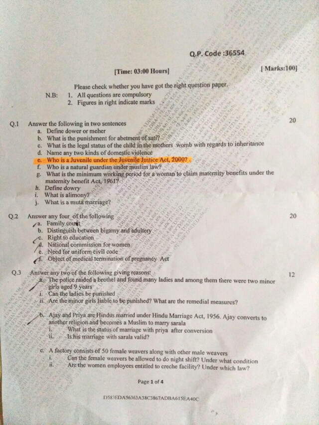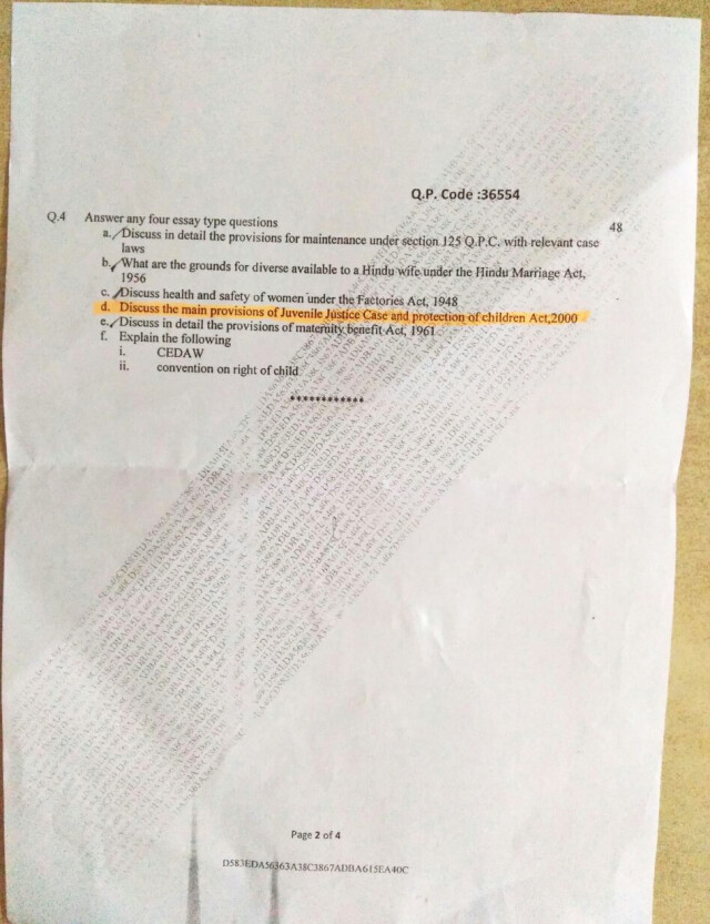 सध्या एलएलबीसाठी ३ आणि ५ वर्षांचे अभ्यासक्रम उपलब्ध आहेत. या दोन्ही अभ्यासक्रमाच्या शेवटच्या वर्षाला (सेमिस्टर ६ आणि सेमिस्टर १०) 'लॉ रिलेटिंग टू वूमन अँड चिल्ड्रन' हा विषय असतो. या विषयाची लेखी परीक्षा १५ जूनला घेण्यात आली. या लेखी परीक्षेत वगळण्यात आलेल्या अभ्यासक्रमातील प्रश्न विचारल्याचा दावा विद्यार्थ्यांनी केला आहे.