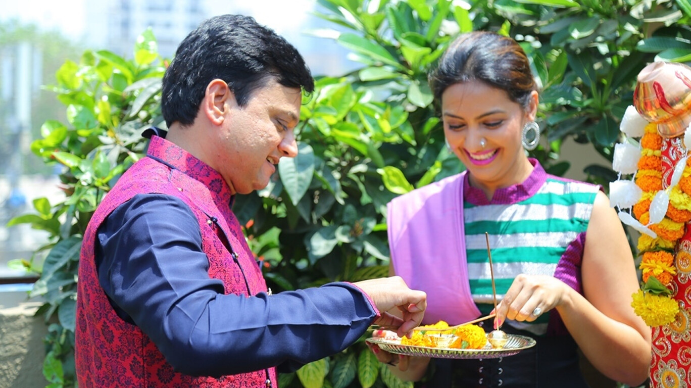 अलीकडच्या काळात एखादा सिनेमा प्रदर्शित होणार असला आणि त्याच दरम्यान एखादा मराठमोळा सण आला की, त्या टीमच्या वतीनं तो सण साजरा करण्याचा ट्रेंड रुजला आहे. याच ट्रेंडला अनुसरून अभिनेता मंगेश देसाई आणि तेजश्री प्रधान यांनी एकत्र येत गुढीपाडवा हा सण साजरा केला.