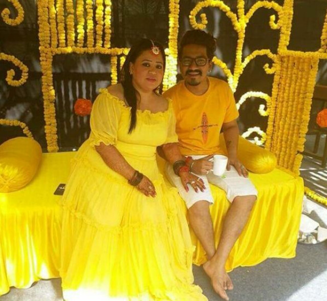 भारती आणि हर्ष यांचा हा फोटो हळदी समारंभाचा आहे, यामध्ये दोघांनीही पिवळे कपडे परिधान केले आहे.