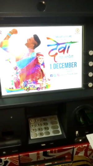 हल्ली सिनेमाचं प्रमोशन ही खूप मोठी गोष्ट झाली आहे. सिनेमा प्रदर्शित होण्याआधी त्याची 'हवा' खरंतर त्या सिनेमाचं प्रमोशन करतं. त्यामुळे सिनेमाचं प्रमोशन कसं चांगलं आणि वेगळं होईल, याकडे जास्त लक्ष दिलं जातं. लवकरच प्रदर्शित होणाऱ्या अंकुश चौधरी आणि तेजस्विनी पंडीत ही स्टारकास्ट असलेला मराठी सिनेमा 'देवा' या सिनेमानेही अगदी सुरवातीपासून प्रमोशनसाठी वेगळी शक्कल लढवली आहे. या सिनेमाचं पोस्टर लॉन्च मध्यरात्री केलं होत. तर सिनेमाचा टीजर प्लाझा सिनेमागृहात टेक्निशियन्सच्या हस्ते करण्यात आला होता. आता 'देवा' चक्क ए.टी.एम. मधून लोकांना भेटणार आहे.